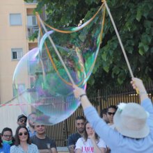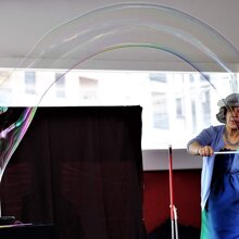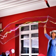 Sulla scena si prepara la grande Maga delle Bolle, tutto sembra pronto per iniziare ma....un assistente pasticcione non riesce proprio a rimanere dietro le quinte... Questo è lo spunto per una serie di gag comiche a ritmo di musica con il coinvolgimento di tutti, piccoli e grandi.
