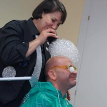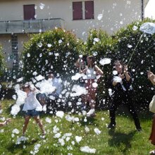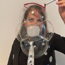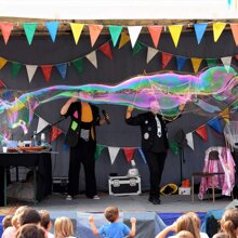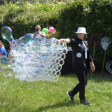 Spettacolo interattivo in cui bambini e adulti presenti vengono coinvolti in sfide impossibili, dove il gioco e le risate sono i veri protagonisti alternando giochi birbanti a bolle giganti.
