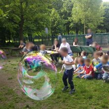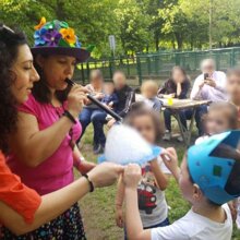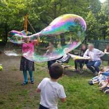 Spettacolo interattivo in cui i bambini vengono coinvolti. Alla fine tutti potrano entrare in una bolla gigante .