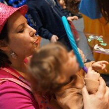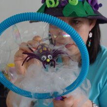 Spettacolo interattivo in cui i bambini vengono coinvolti. Alla fine tutti potrano entrare in una bolla gigante .